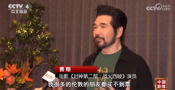 电影《封神第二部:战火西岐》演员费翔:《封神》在国际市场上,我们同步发行,票房非常好,我很多的伦敦的朋友都买不到票。我特别高兴的是对于中国文化,全世界的观众现在也产生了一些好奇心。所以我觉得这一点特别好,也是中国电影的一个机会。